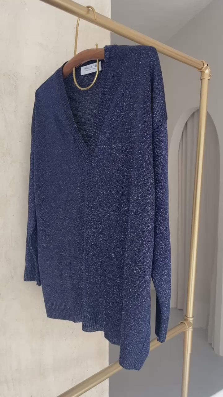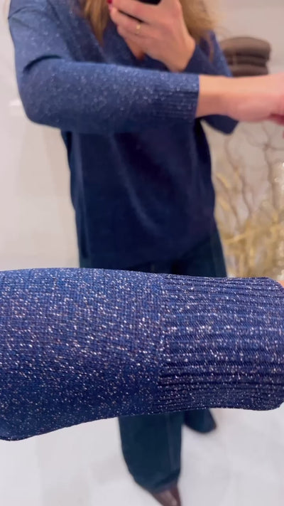 Nuestra nueva joya de jersey , un sueño de prenda que estábamos deseando tener y que por fin hemos diseñado y tejido en nuestro taller con el mejor lurex que hay en hilatura extrasuave y con un brillo sutil del que nunca te vas a cansar y que puedes vestir tanto de día como de noche .
